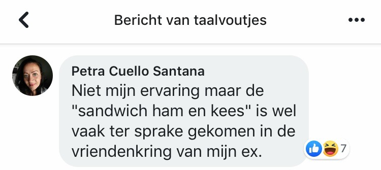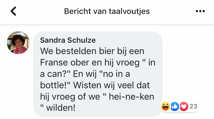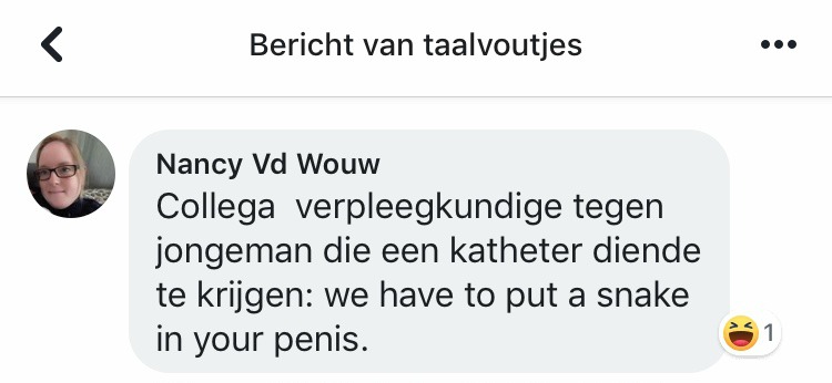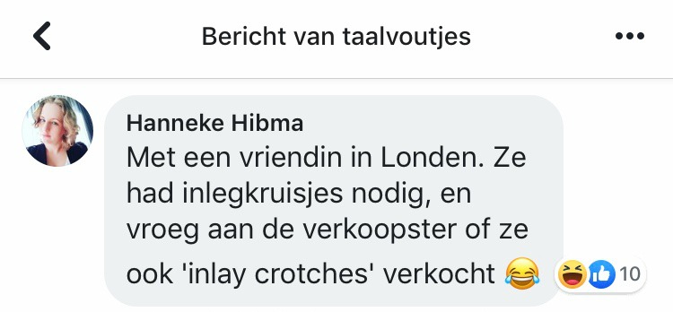 Ja hoor, stuurt er een keer een taalkundige een plaatje naar Taalvoutjes, bevat het geen taalvout! En grappig is de titel van het boek van Anne van Veen ook al ...
