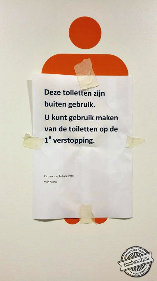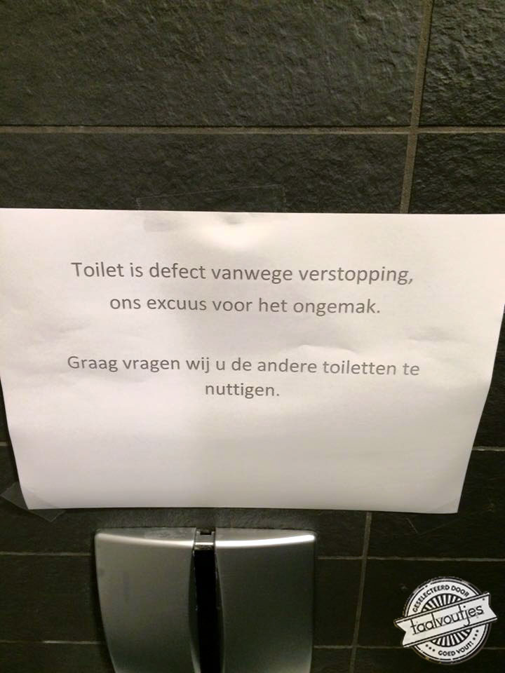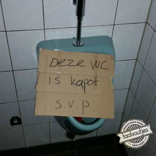 Of het nou een grote of een kleine boodschap is, in deze teksten gaat iets grondig mis. Daar kun je boos om worden (“Ben je nou helemaal van de pot gerukt?”) of je geniet ervan: dit zijn 15 wc-voutjes om je in je broek te laten piesen van het lachen.