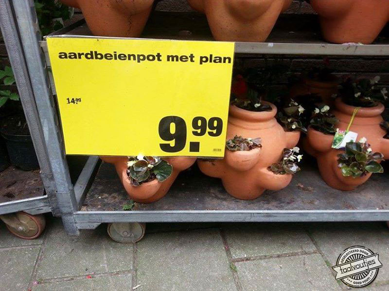 Hoera, de zomer is begonnen! Nou ja, in theorie dan … Tijd om de bloemetjes buiten te zetten (en hopen dat ze niet verzuipen). Bij de bloemenzaken en de tuincentra kun je niet alleen terecht voor mooie bloeiers, maar ook voor de mooiste taalvouten. We zetten onze favorieten op een rij!