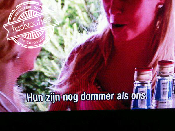 Dacht je bij puntje 4: jaja, leuk dat ‘hun’, maar die ‘dommer als ons’ dan? Ja, ook dat is eentje waar menige teen van krom gaat staan. Vergrotende trappen worden altijd gevolgd door ‘dan’. ‘Als’ is alleen correct bij een vergelijking. Samenvattend: je bent even dom als de meiden hierboven als je dergelijke zinnen uitkraamt, maar je bent mogelijk nog dommer dan zij als je niet doorhad dat ‘ons’ in die zin ook fout is.