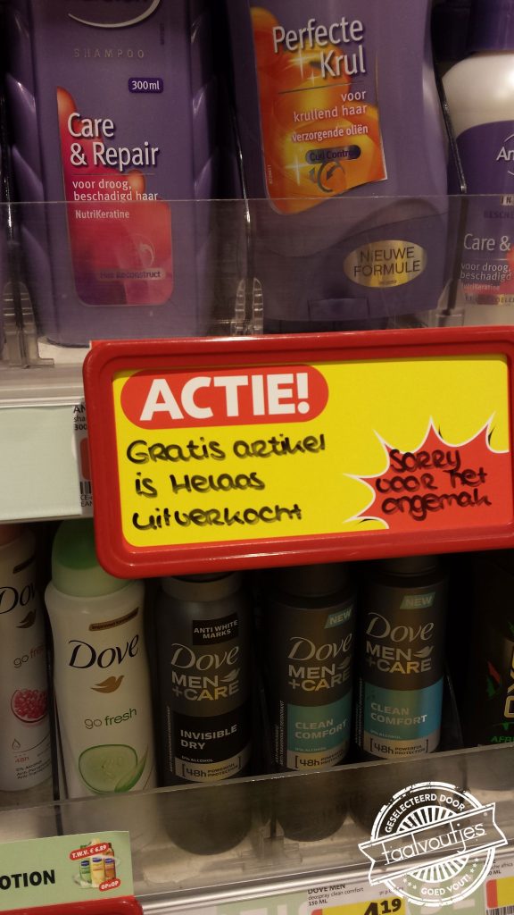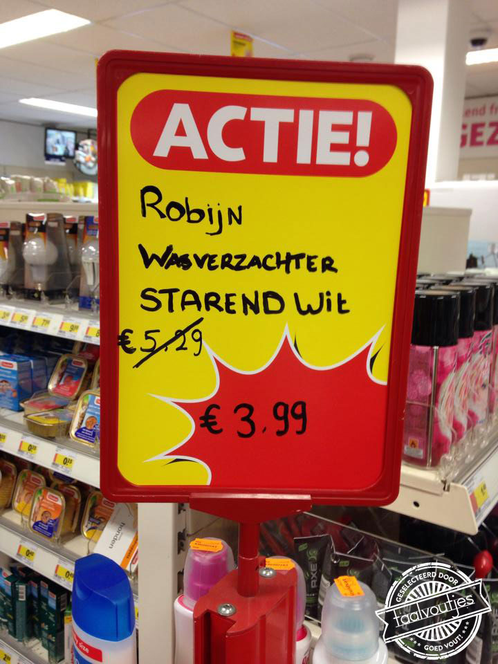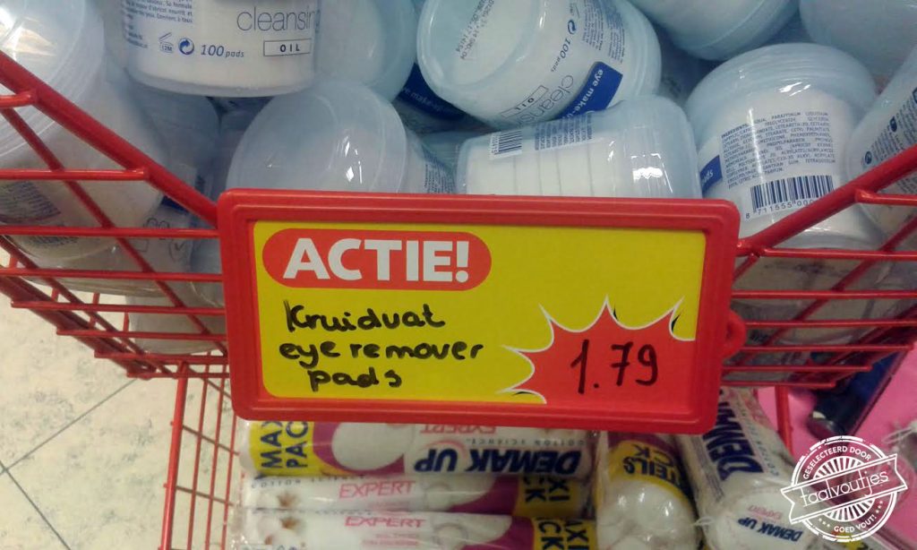 Dat ‘verrassend’ in de slogan van Kruidvat goed wordt geschreven, mag bijna een wonder heten. In de drogisterijketen vind je niet alleen allerhande schoonmaak- en cosmetica-artikelen tegen voordelige prijzen, de winkel heeft standaard ook een groot aantal schitterende taalmissers in de aanbieding. Scroll door en sla uw slag!