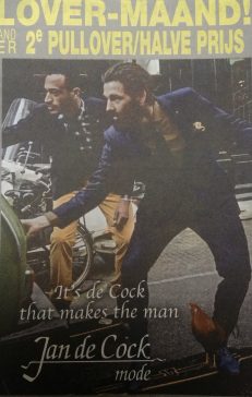 We komen bijvoorbeeld veel tweetalige slogans tegen, zoals bij Hema de musical, de winnaar van onze eerste jaarverkiezing in 2012: ‘Hema, de worst musical ever‘. Maar ook: ‘We do asbest we can’ (Sloopcombinatie Laren), ‘Ei love you‘ (Productschap Pluimvee en Eieren), ‘Van die sign er niet zo veel!‘ (Robin Design). En natuurlijk ‘It’s de Cock that makes the man’ van herenmodezaak Jan de Cock uit Tilburg.