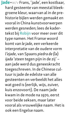 Veel meer voorbeelden vind je in het Van Dale Voornamenboek, waarin je de verhalen achter de meestvoorkomende voornamen in Nederland en Vlaanderen vindt. In al deze verhalen is een rijkdom aan onderwerpen te vinden, variërend van geschiedenis, literatuur, mythologie, religie en symboliek, tot muziek, talen, geografie, flora en fauna. En af en toe een prachtig taalvoutje.