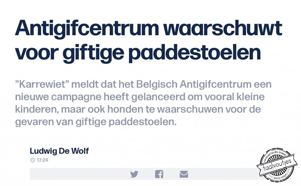Ik wilde namelijk eerst weten of het ‘paddenstoel’ met of zonder -n was. De lezer moet kunnen bouwen op de taalkundige correctheid van het artikel. Met -n bleek de juiste spelling te zijn. Van kracht is namelijk de pannenkoekregel ‘waarbij je de uh-klank in samenstellingen met een tussen-n schrijft als het eerste deel van de compositie bestaat uit een woord dat enkel een meervoud heeft dat eindigt op -en.’ Na vier keer lezen begreep ik eindelijk wat er stond en wist ik dat dit het geval is bij ‘pan’ en bij ‘pad’ (die kennen immers alleen ‘pannen’ en ‘padden’ en geen ‘pannes’ en ‘paddes’), vandaar dus paddenstoel.