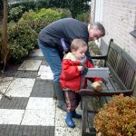 Sam was veel buiten en vond alles even interessant. Hij hielp zijn opa altijd met klussen en draaide zijn hand niet om voor cement maken, timmeren en schilderen – op zijn eigen leeftijdsniveau, natuurlijk. Naast de speciekuip van opa stond zijn eigen emmertje. Elke week maaide opa het gras in onze tuin. Sam kwam altijd direct aanrennen als opa in zijn schuurtje verdween. Daar kwam op een gegeven moment, in het voorjaar de grasmaaier uit en Sam mocht meelopen achter de stang. Hij vond het geweldig.