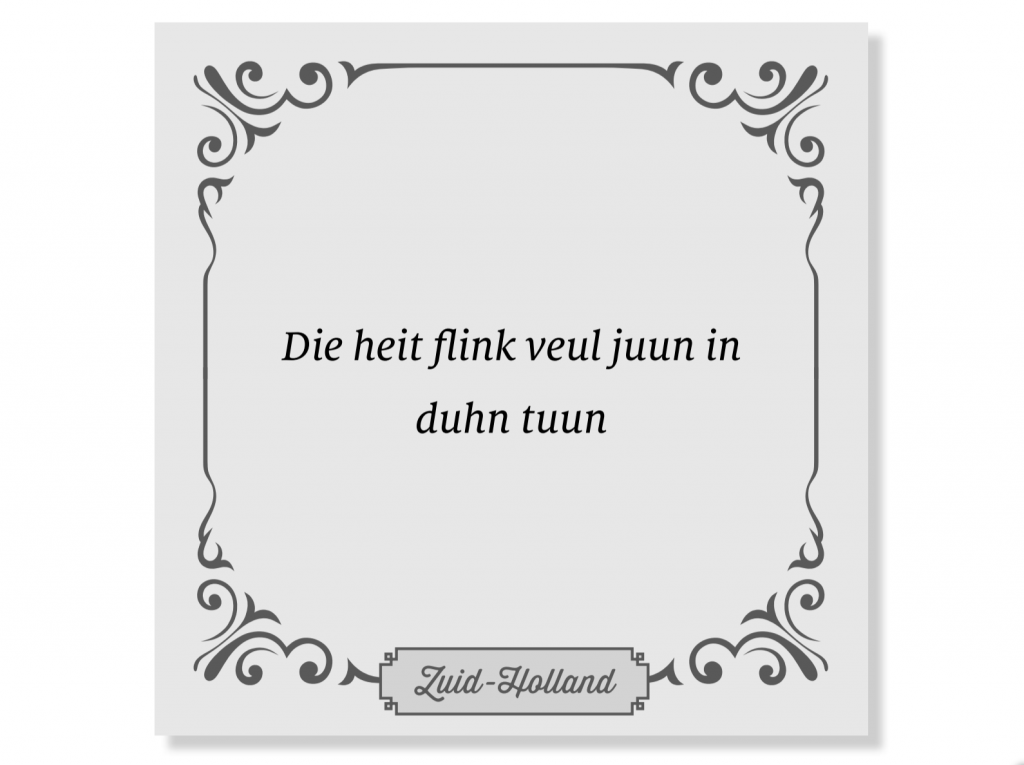 We worden allemaal geacht correct ‘Standaard Nederlands’ te spreken en te schrijven (voor zover dat bestaat), maar daar houdt onze taal (gelukkig) niet op. Alleen al binnen onze landsgrenzen bestaan er honderden dialecten – en dan rekenen we Vlaanderen nog niet eens mee. Hoe goed ken jij je moerstaal buiten het ‘ABN’? Test je kennis van de regionale spreekwoorden en uitdrukkingen met deze quiz!