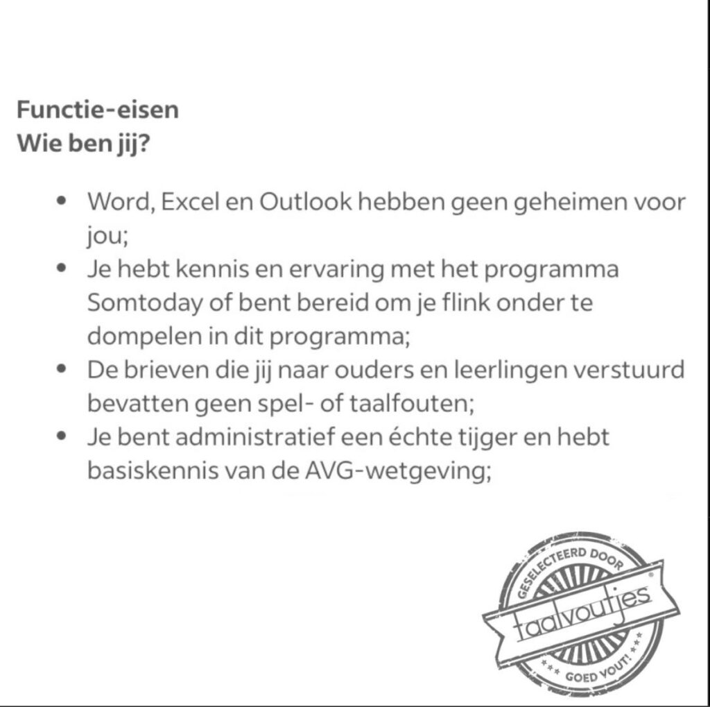 Terwijl het nieuws in 2024 werd gedomineerd door doorgedraaide politieke leiders, stijgende huizenprijzen en héél veel regen, waren de taalvoutjes vooral een bron van luchtigheid en lachsalvo’s. Ook dit jaar zaten er weer pareltjes tussen: van onbedoeld dubbelzinnige borden tot creatieve spelfouten die we niet snel zullen vergeten. De afgelopen weken hebben jullie massaal gestemd op de grappigste, pijnlijkste en meest absurde taalvoutjes van het jaar. De ruim tweeduizend stemmen zijn geteld: dit is de grappigste taalvout van 2024!