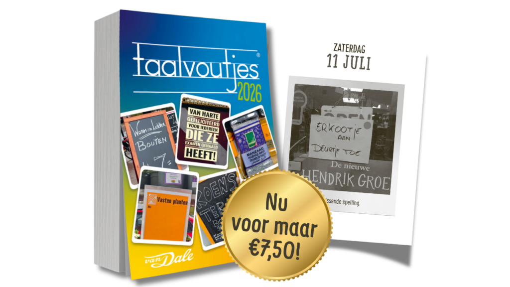 Wil je op de hoogte blijven van de leukste voutjes, taalquizzen of andersoortige Taalvoutjes-nieuwtjes? Schrijf je dan in voor onze nieuwsbrief of volg ons op Facebook, Instagram, Twitter, LinkedIn of BlueSky.