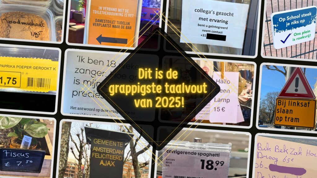Terwijl AI in een razend tempo het internet overnam, Nederland maandenlang zonder regering zat en zelfs wereldleiders soms moeite hadden zinnen aan elkaar te knopen, deden de taalvoutjes in 2025 waar ze het best in zijn: genadeloos echt blijven. Jullie stemden massaal op de grappigste, pijnlijkste en meest absurde vondsten van het jaar. De ruim 6000 stemmen zijn geteld: dit is de grappigste taalvout van 2025!
