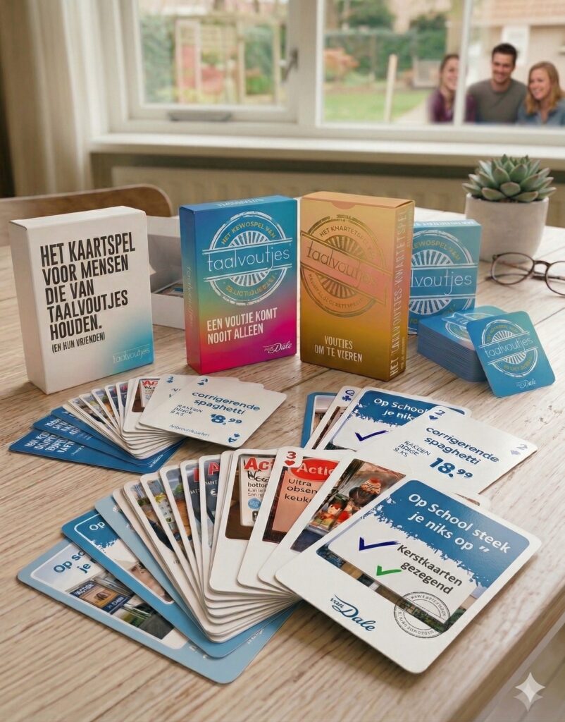 Het is (bijna) tijd om een nieuw kaartspel voor Taalvoutjes te ontwikkelen! Wordt het een nieuw kwartet- of memospel, een klassiek kaartspel of een volwassen partygame? Het oordeel is aan jou!