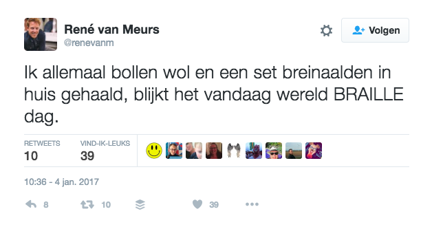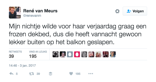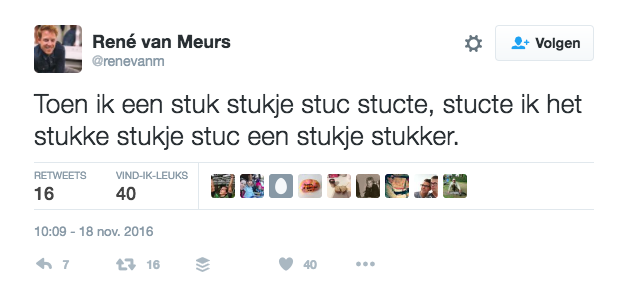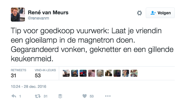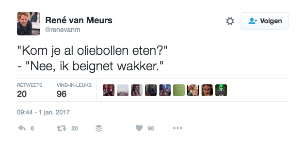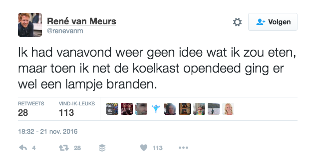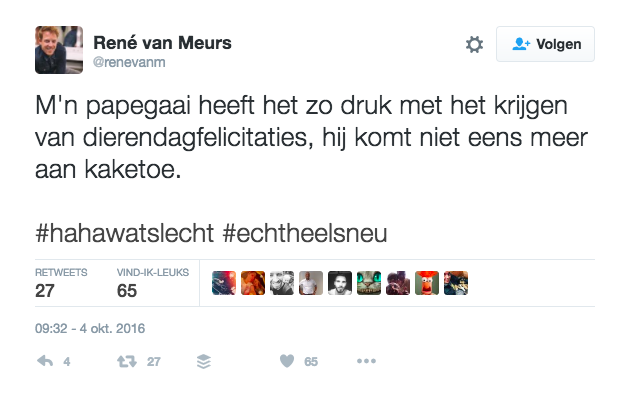 Maar ook op Twitter vermaakt René met spitsvondigheden en woordgrappen: