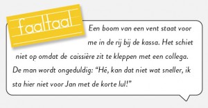 Faaltaal Jan met de korte lul Met dank aan Joop! 923 shares Ik snap 'm niet Heb je zelf ooit een leuke taalblunder gemaakt of heb je een ander mooi taalverhaal? Stuur deze dan aan ons door! Wie weet zie je je eigen Faaltaal dan hier binnenkort terug.