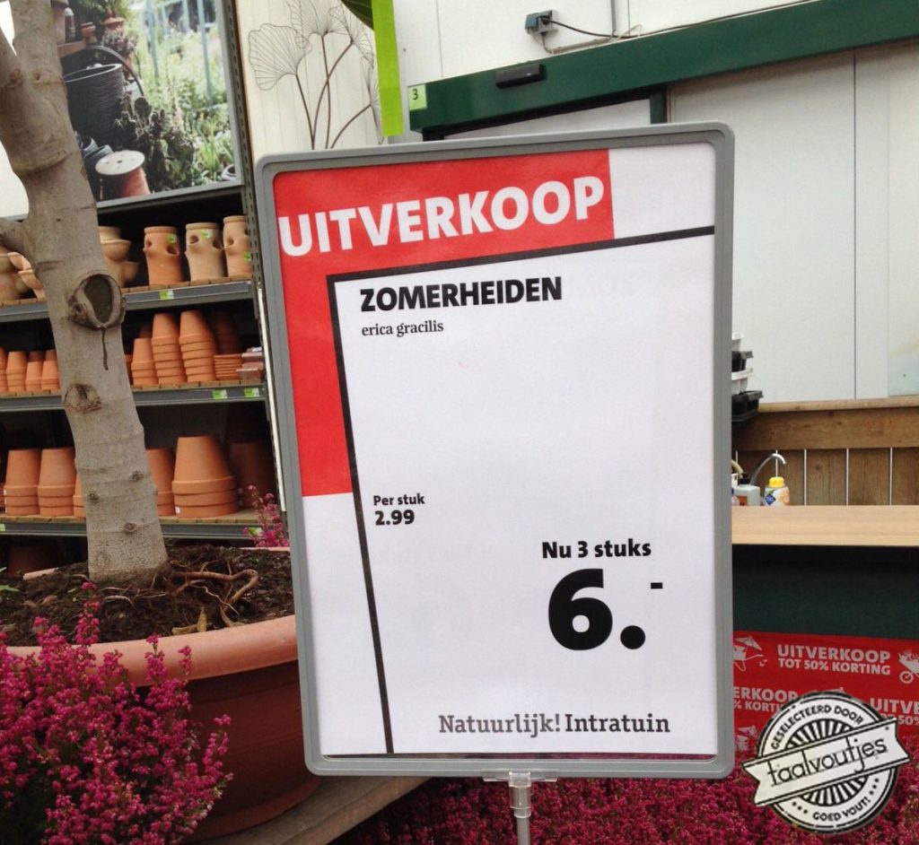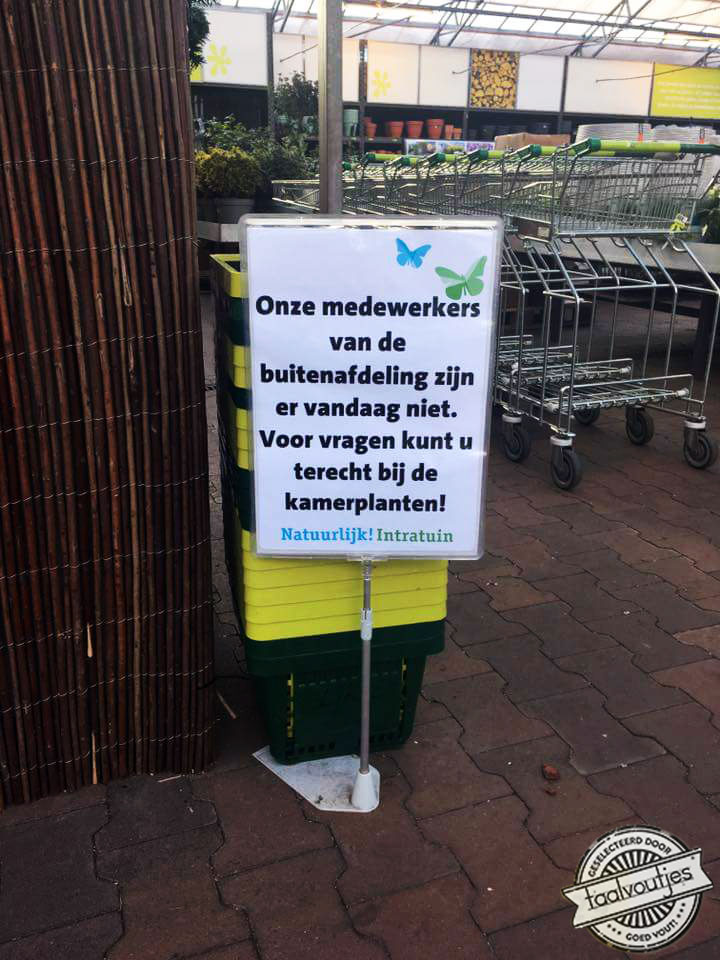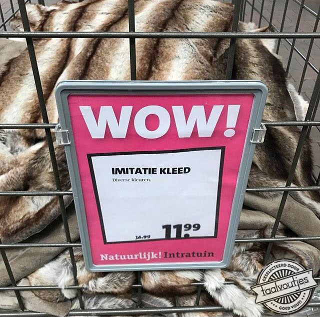 Regelmatig verschijnen er taalvoutjes uit winkelketens als Kruidvat, Albert Heijn, Blokker, enzovoorts op deze site. Volgens die ketens is dat ‘menselijk’, kun ...