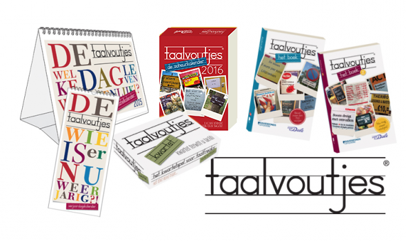 Taalvoutjes – het boek (vijf losse delen)Geniet van de allerleukste taalvoutjes, columns van bekende Nederlanders, de mooiste taalanekdotes en nog veel zoveel meer. Inmiddels is er een reeks van vijf boeken. Vaste boekenprijs per boek: € 12,95 |