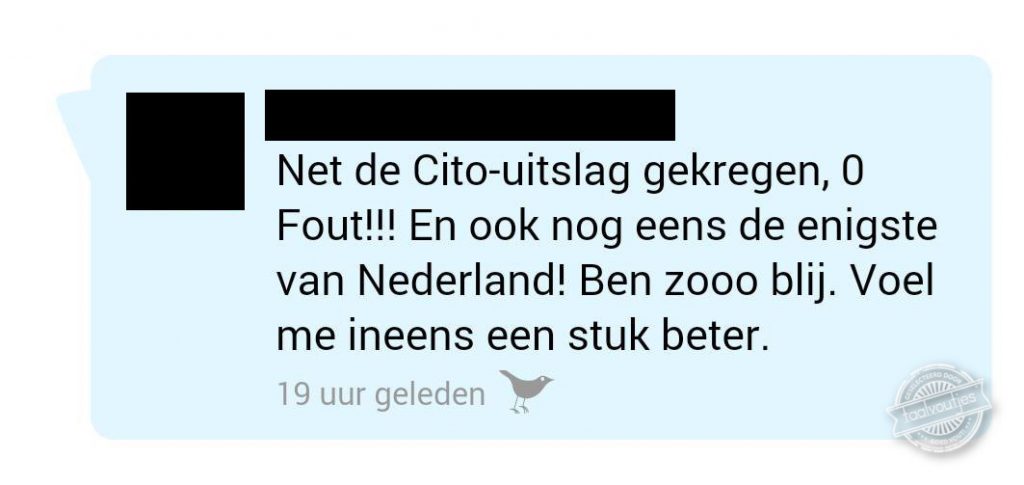 Morgen krijgt ze uitslag. Geen bultjes of vlekken, nee, ze krijgt te horen of ze geslaagd is. Haar moeder houdt nog wel een slag om de arm, maar heeft goede hoop. “Aan de voorbereiding zal het niet liggen. Ze had de slag gauw te pakken, met dat hele studeergedoe.” Vol trots: “Ja, mijn dochter kan wel leren, ze had op haar typediploma wel vierhonderd aanslagen per minuut.” Ook vertelt ze dat die examenweken wel een aanslag waren op haar nachtrust. “Ik heb slaappilletjes van de dokter gekregen, maar het duurde even voordat die behandeling aansloeg.”