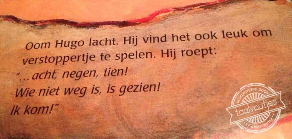 “Een, twee, drie, vier, vijf, zes, zeven, acht, negen, tien! Wie niet weg is, is gezien. Ik kom!” Je haalt je handen voor je ogen vandaan en kijkt om je heen. Leeg. Je knijpt een beetje met je ogen, in de veronderstelling dat je dan nog beter kunt zoeken. Voorzichtig en langzaam loop je weg van de plek. Dan, geritsel … Iemand trekt een sprintje … “Buut vrij!” Te laat …